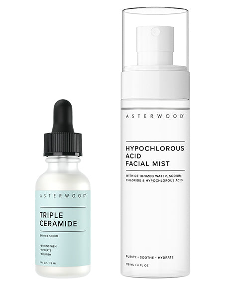 Stressed, sensitive or reactive skin? Consider this duo your skin’s peacekeeper. Our Hypochlorous Acid Facial Mist gently soothes, purifies and calms while the Triple Ceramide Serum strengthens and helps rebuild skin’s moisture barrier, locking in hydration and protecting against daily stressors. Use the Hypochlorous Acid Facial Mist as the first step after cleansing. Wait until it completely dries down before applying the Triple Ceramide Serum.